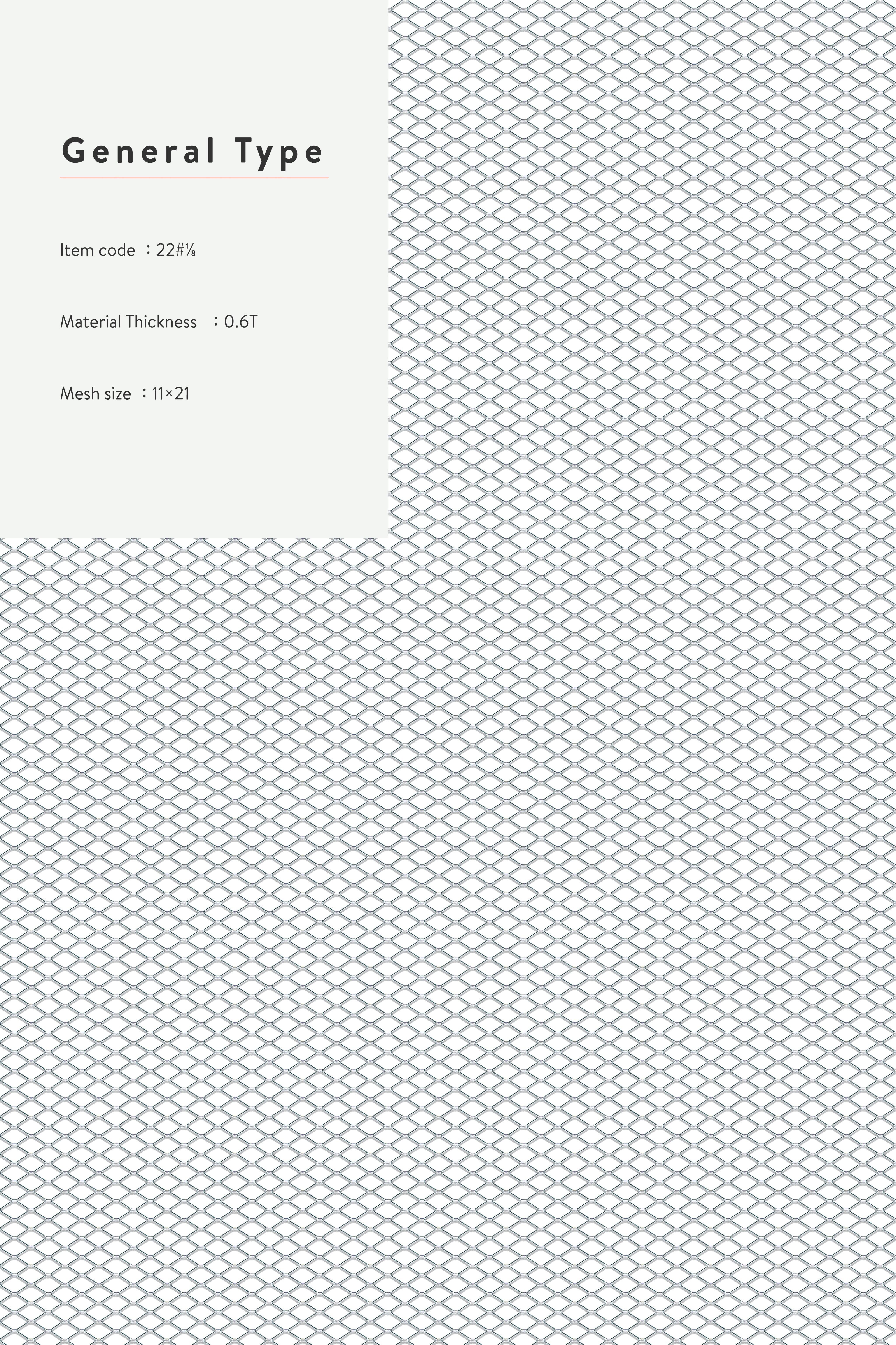 Mesh ref.Mesh SizeThicknessRef Weight (kg / sheet)Sheet SizeMaterial