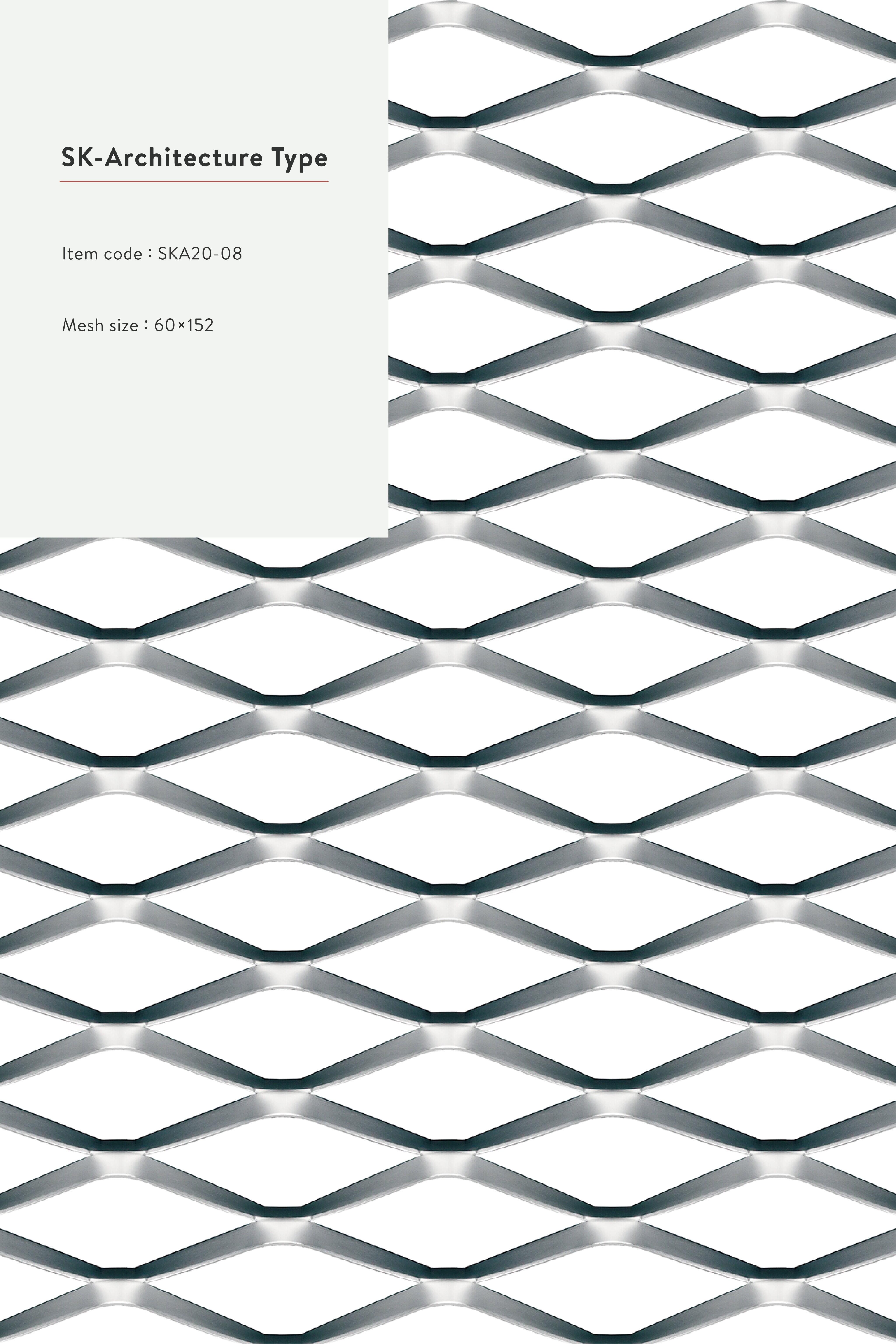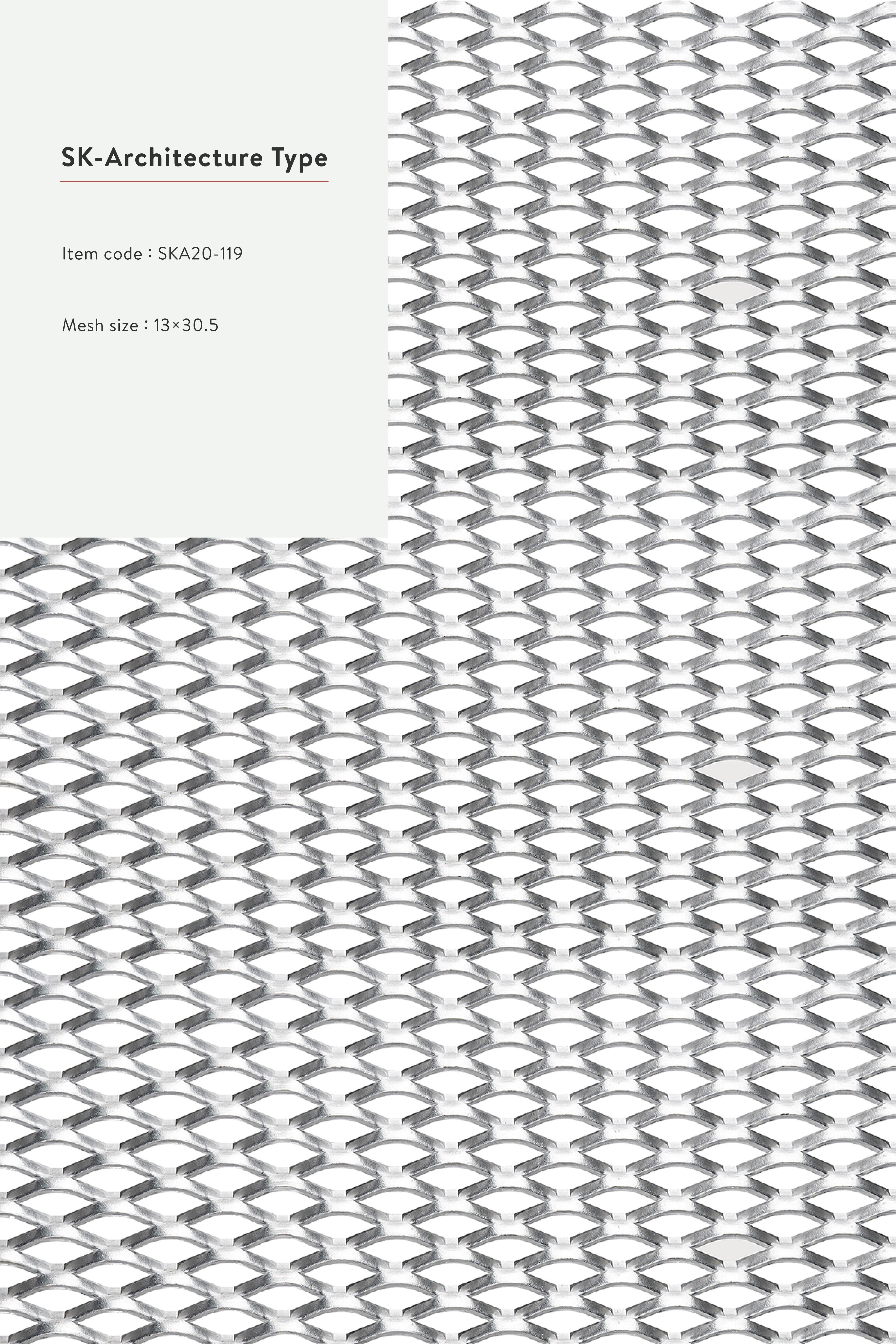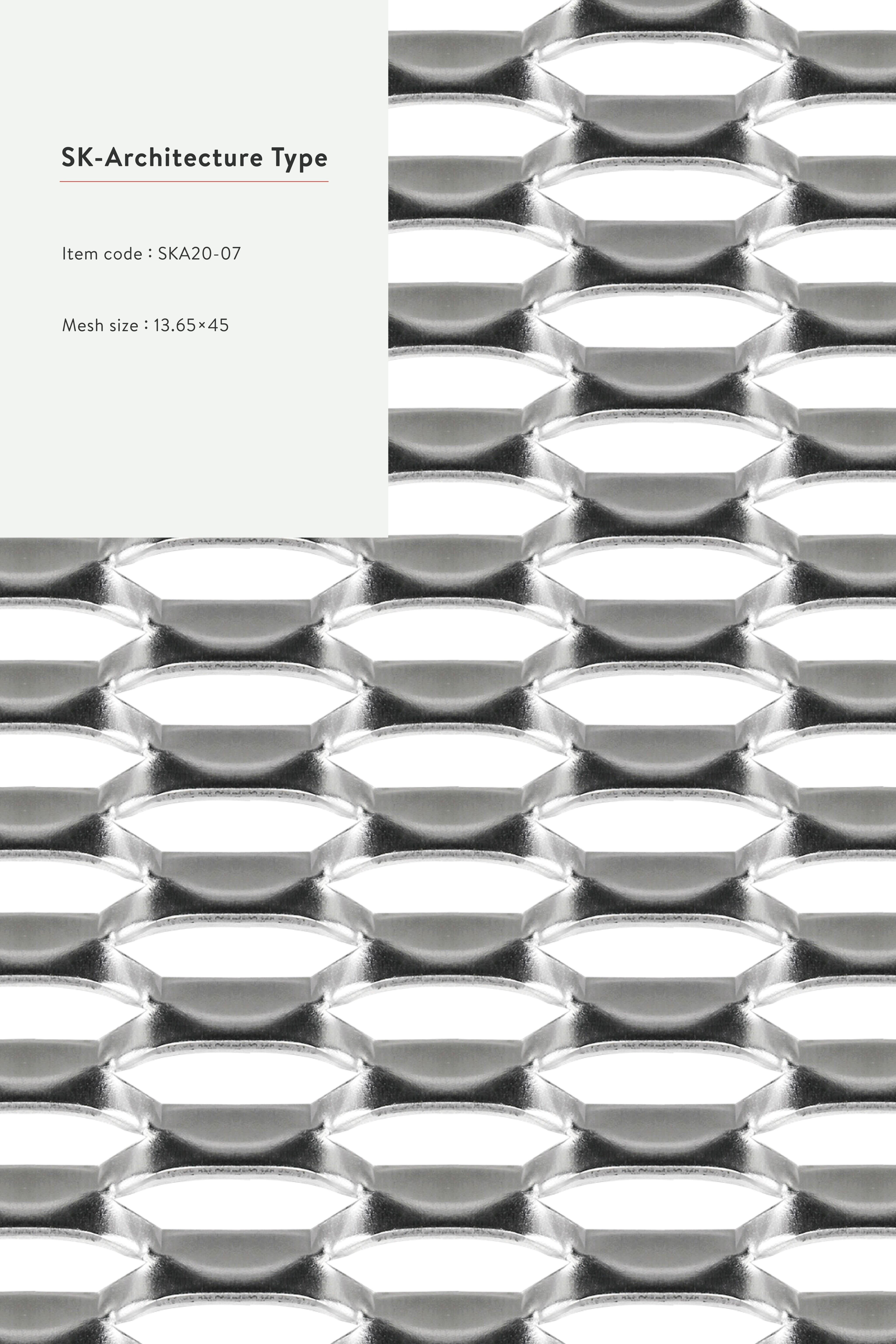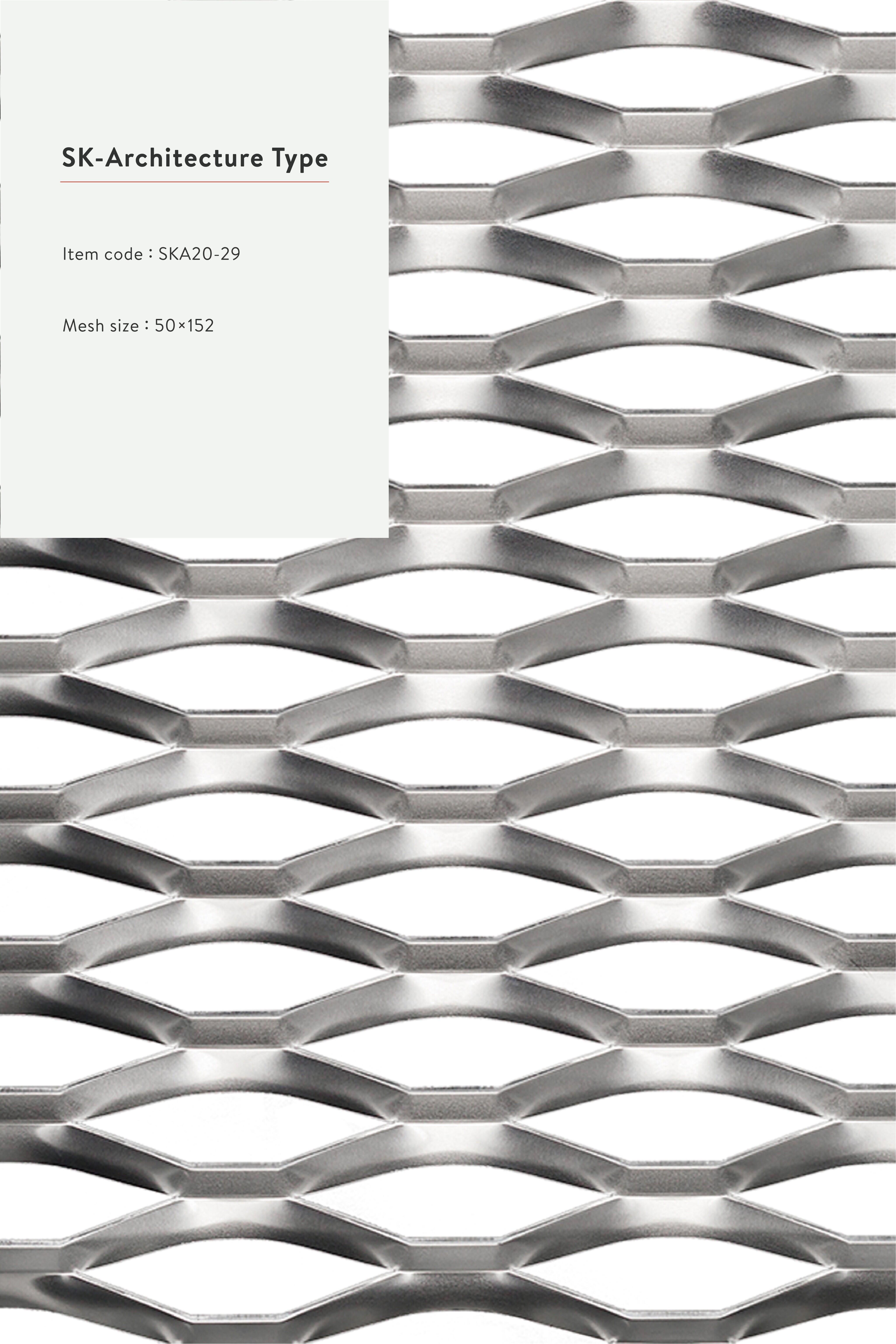 Shang Kai Steel's SKA Expanded Mesh is an innovative architectural facade material designed to combine aesthetics with environmental benefits. This mesh structure is primarily made of aluminum alloy and its unique open design effectively blocks sunlight and heat radiation, thereby regulating indoor temperature, achieving energy savings and reducing electricity consumption. SKA Expanded Mesh's manufacturing process emphasizes low carbon emissions and waste-free production, in line with today's standards for green building materials.